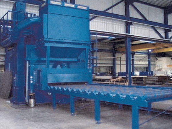 常規鋼板預處理拋丸清理機包含:鋼板拋丸機處理線、噴漆烘干設備等幾部分組成,采用輥道輸送,根據鋼板寬幅定制拋丸器排布,其中我公司在拋丸設備的開發過程中總結了國內國家設備用戶使用情況,針對鋼丸的回收部分,特別加裝刮板及滾掃,鋼丸回收率高,損耗低。 此類非標設備的開發對企業的研發能力要求較高,同時也非?简炂髽I的生產能力,由于大部分工作需在客戶現場完成組裝,因此前期的生產精度要求非常高,若偏差大,客戶現場組裝過程非常麻煩,因此工廠對此類設備的生產經驗尤為重要。前期跟客戶溝通場地安裝等問題,并根據客戶要求出具地基圖紙,后續生產中,板材的裁切、焊接、零部件的拼裝應在經驗豐富的生產工人手中實現。確保客戶現場的0誤差。 鋼板預處理拋丸清理設備是大型船廠、鋼結構廠家的必備設備,設備自動化程度高,生產量大。